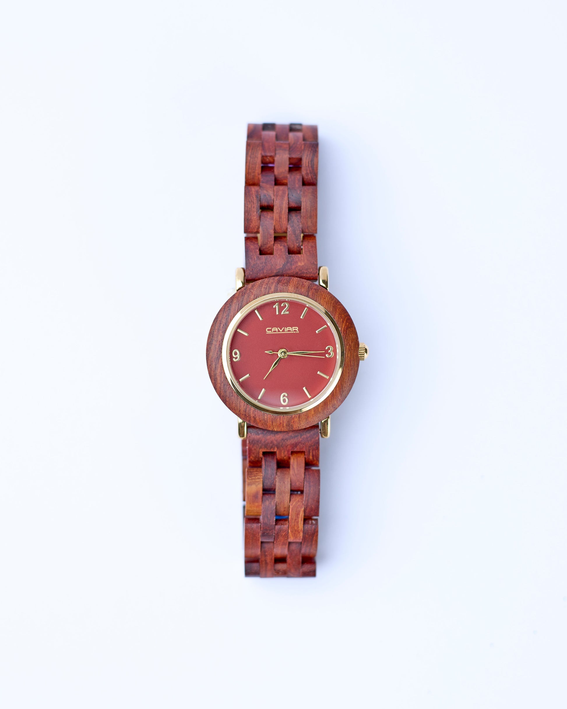 Model: GT025-2A. The GT025-2A is a refined ladies’ timepiece, crafted from beautiful Red Sandalwood, featuring a 15.8 mm case with mineral crystal glass, powered by precise Japanese Miyota movement, and offering 3 ATM splash-proof water resistance.