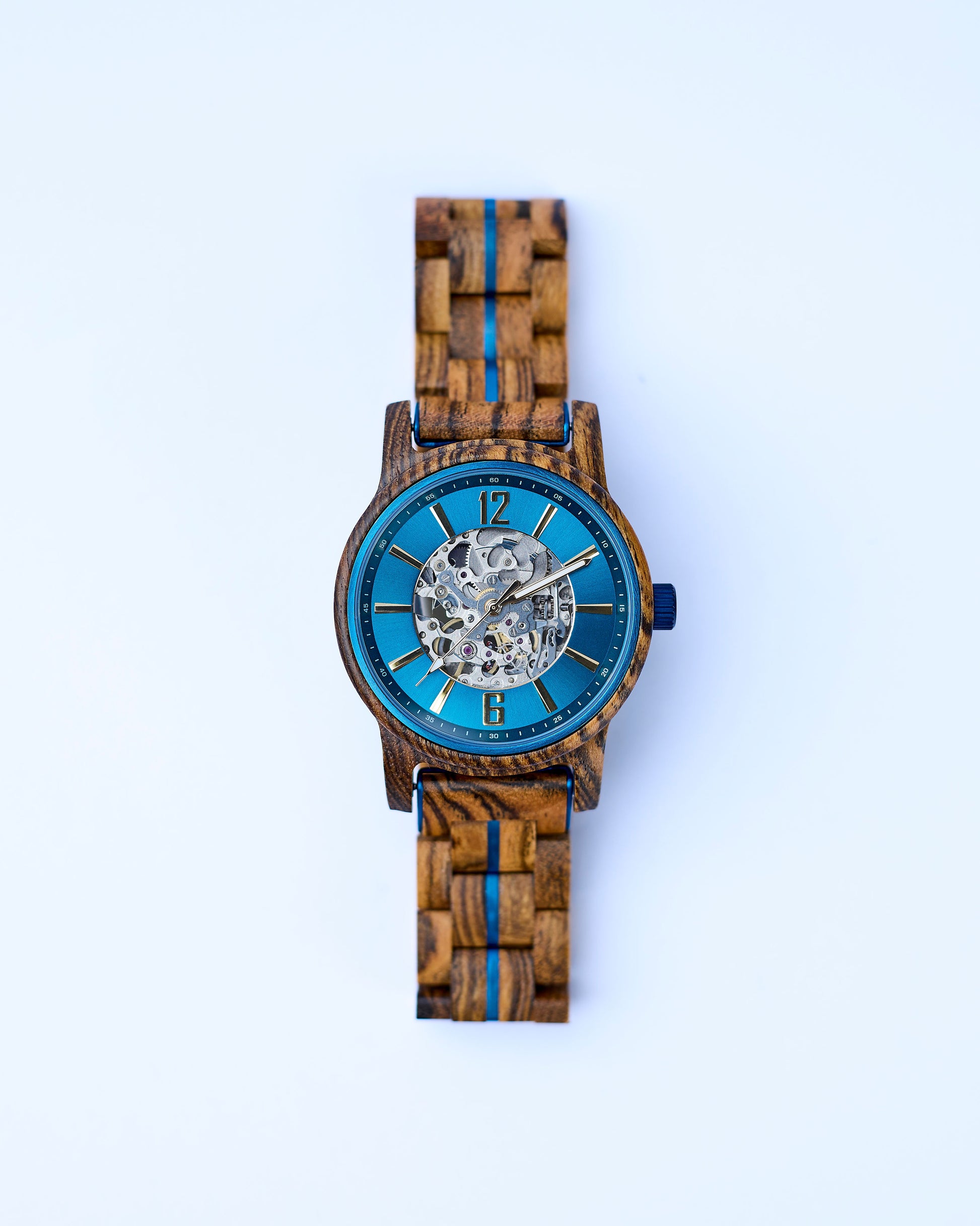 Model GT114-4A — a 44 mm men’s watch crafted from distinctive snakewood, featuring mineral crystal glass, precise Miyota movement, and 3 ATM splash-water resistance.